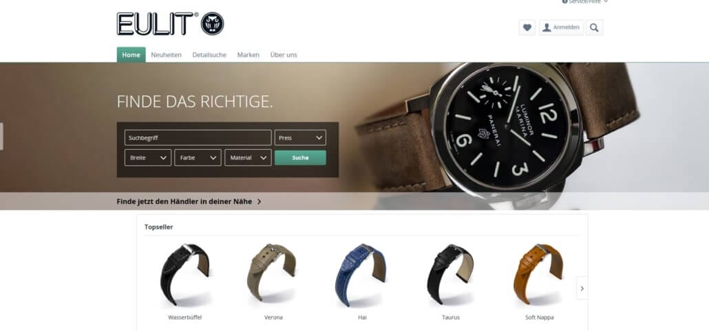 Die Vorschau sowie ein Konfigurator in der Suche erleichtern dem Kunden, sich im EULIT-Sortiment zurecht zu finden.